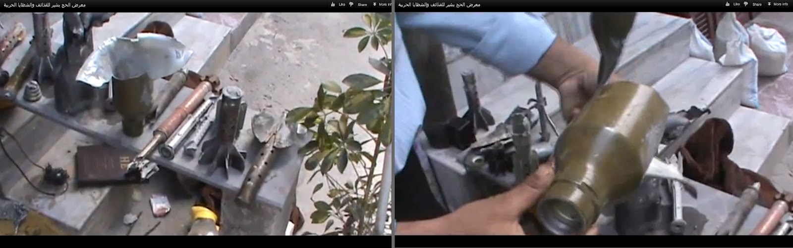 | two frames from video on معرض الحج بشير للقذائف والشظايا الحربية YouTube channel. Uploaded 22/06/2012. Thanks to @RogueAdventurer for help with weapons ID. |