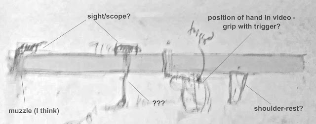But no. That was not the case. Instead something equally interesting might be in the hand of that opposition fighter. The sketch above is a loosely reconstructed side-view I made using the significant details from the video-image to be able to reject Google's candidates. I have noted what I believed the components to be, but as can be seen I wasn't really sure of anything. And what really had me confused was that I didn't realize that the component close to the fighter's shoulder is a shoulder-rest and not a front grip. That kept the RPG-29 alive as a candidate for a while even if that would mean the muzzle was pointed backward in the image. But still; it just wouldn't fit.